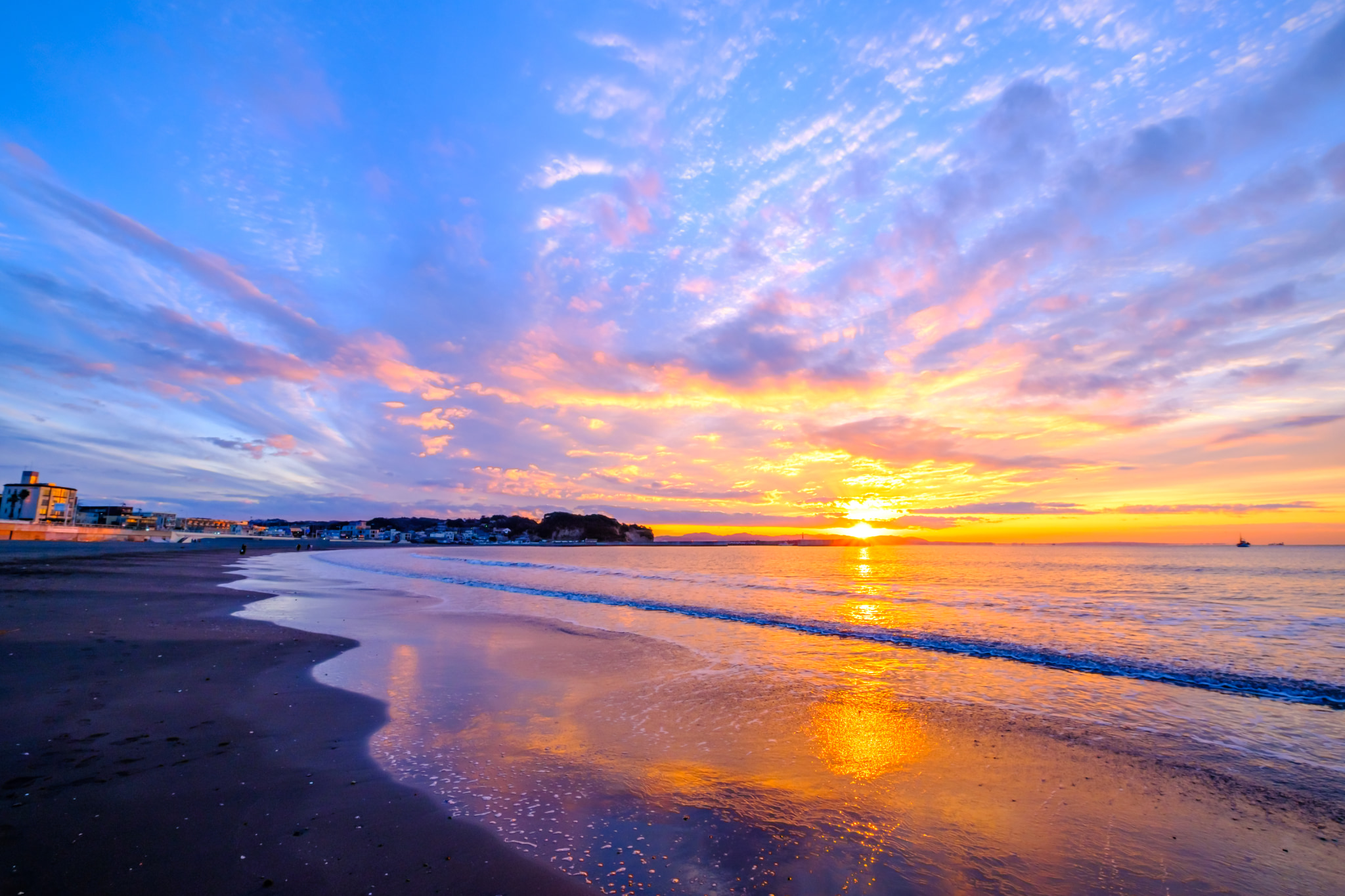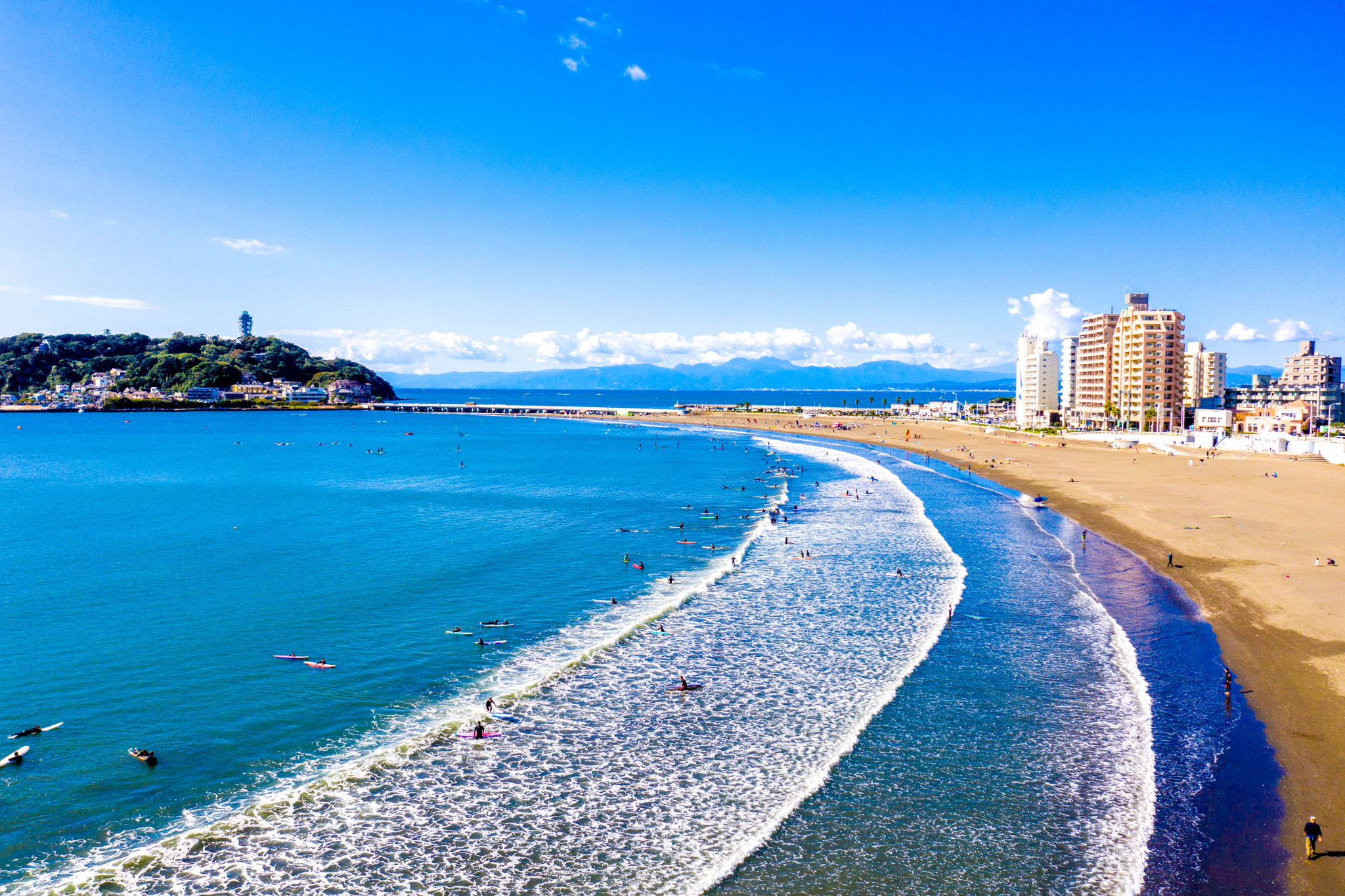 海水浴やサーフィンが楽しめる湘南を代表するビーチ。