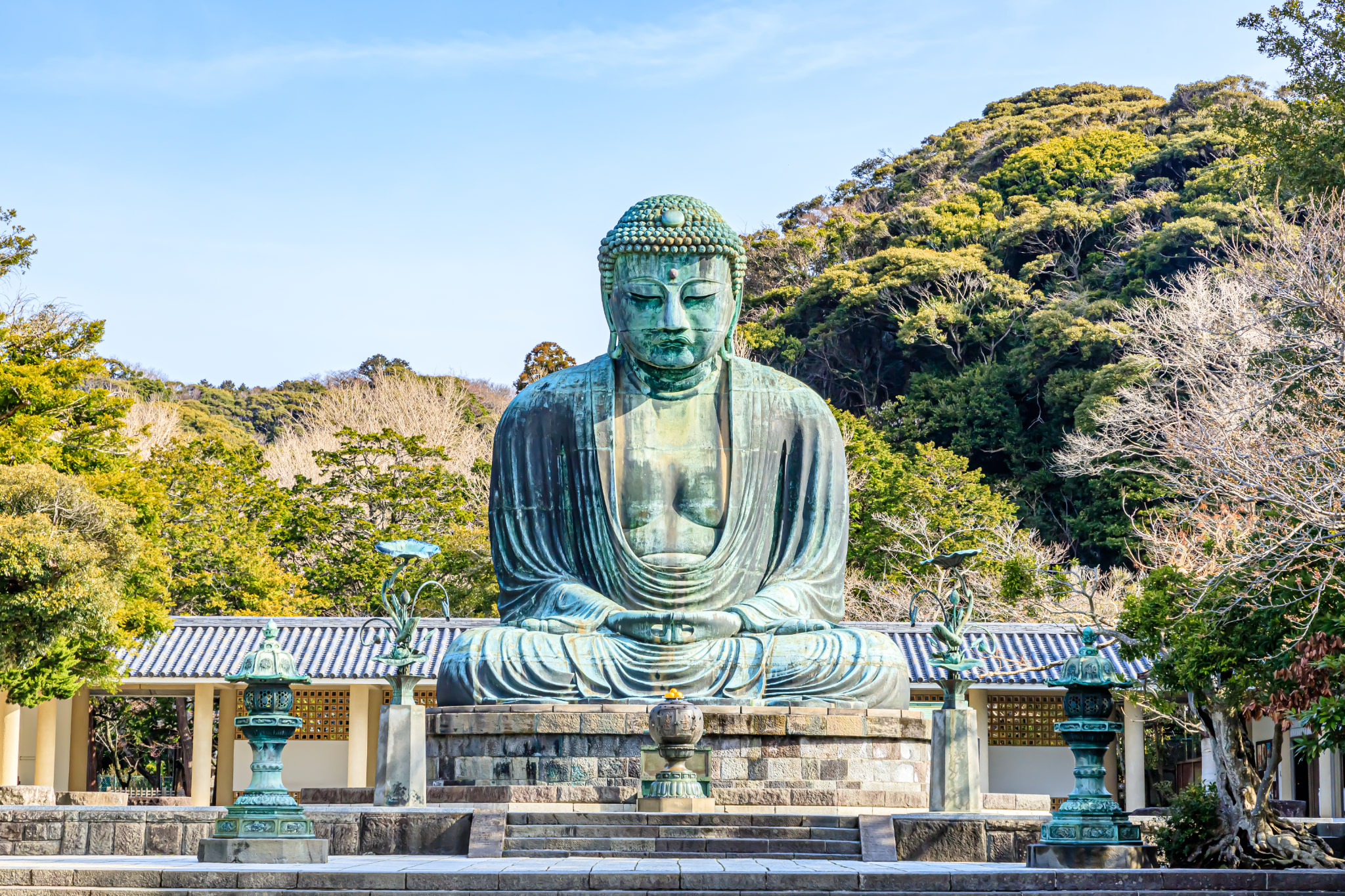 鎌倉観光の象徴的存在。屋外に鎮座する大仏は迫力満点。